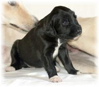 Nach Little sollten Faktoren der A-Serie und der E-Serie das Aussehen des schwarzen Hundes bestimmen. Wie schon in Kapitel 2.6 diskutiert, erhob sich die Frage, ob das Schwarz in der A-Serie vorhanden ist oder als unabhängiges Gen keiner der Serien angehört. Die neuen DNA-Tests (Professor Schmutz, Kanada) haben ergeben und bewiesen (s. 2.5, 2.6 ), daß das Schwarz nicht in die A-Serie gehört, sondern zusammen mit Brindle eine eigene Serie, die K-Serie bildet, d.h. blacK: K - Kbr - k. Die Schwarzanteile des Sable oder Black&Tan sind davon nicht betroffen.) Es ist epistatisch gegenüber den Allelen der A-Serie, also gegenüber Aguti, Sable mit und ohne Maske , Black&Tan und rezessiv Schwarz. ee läßt jedoch kein schwarzes Pigment zu. Das Gen dafür kann jedoch unbemerkt übertragen werden.